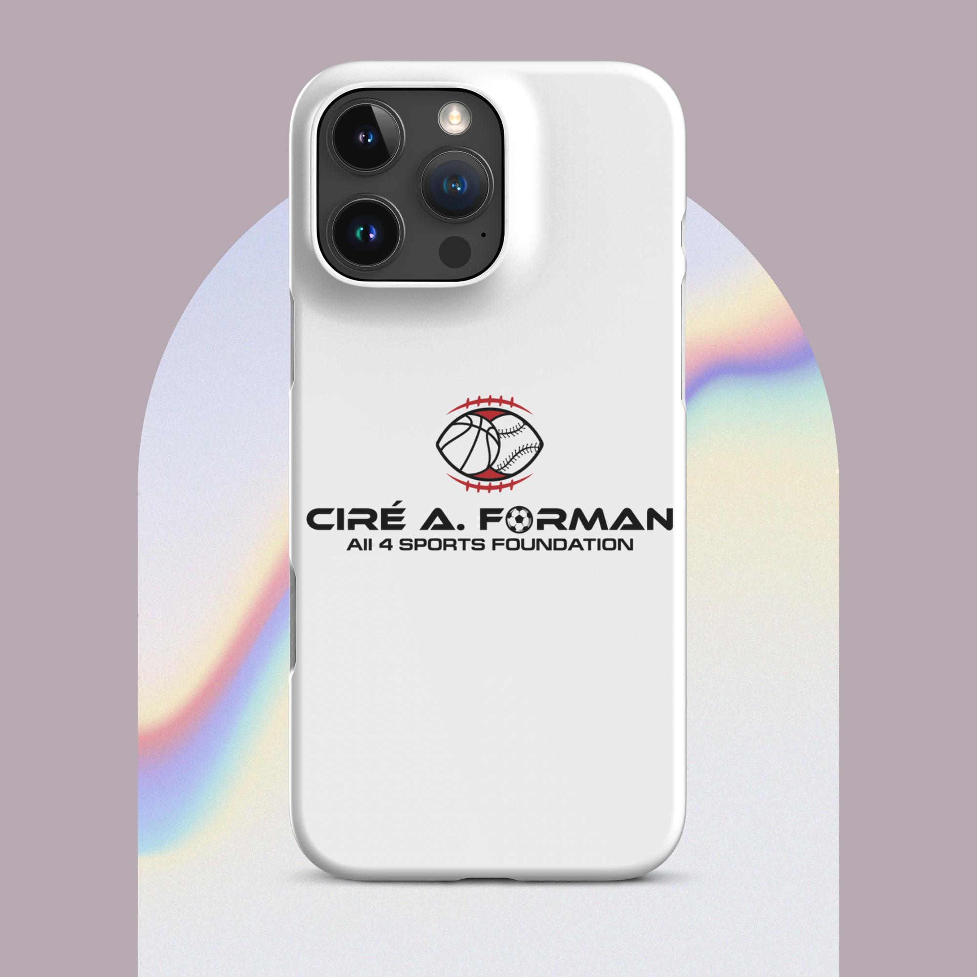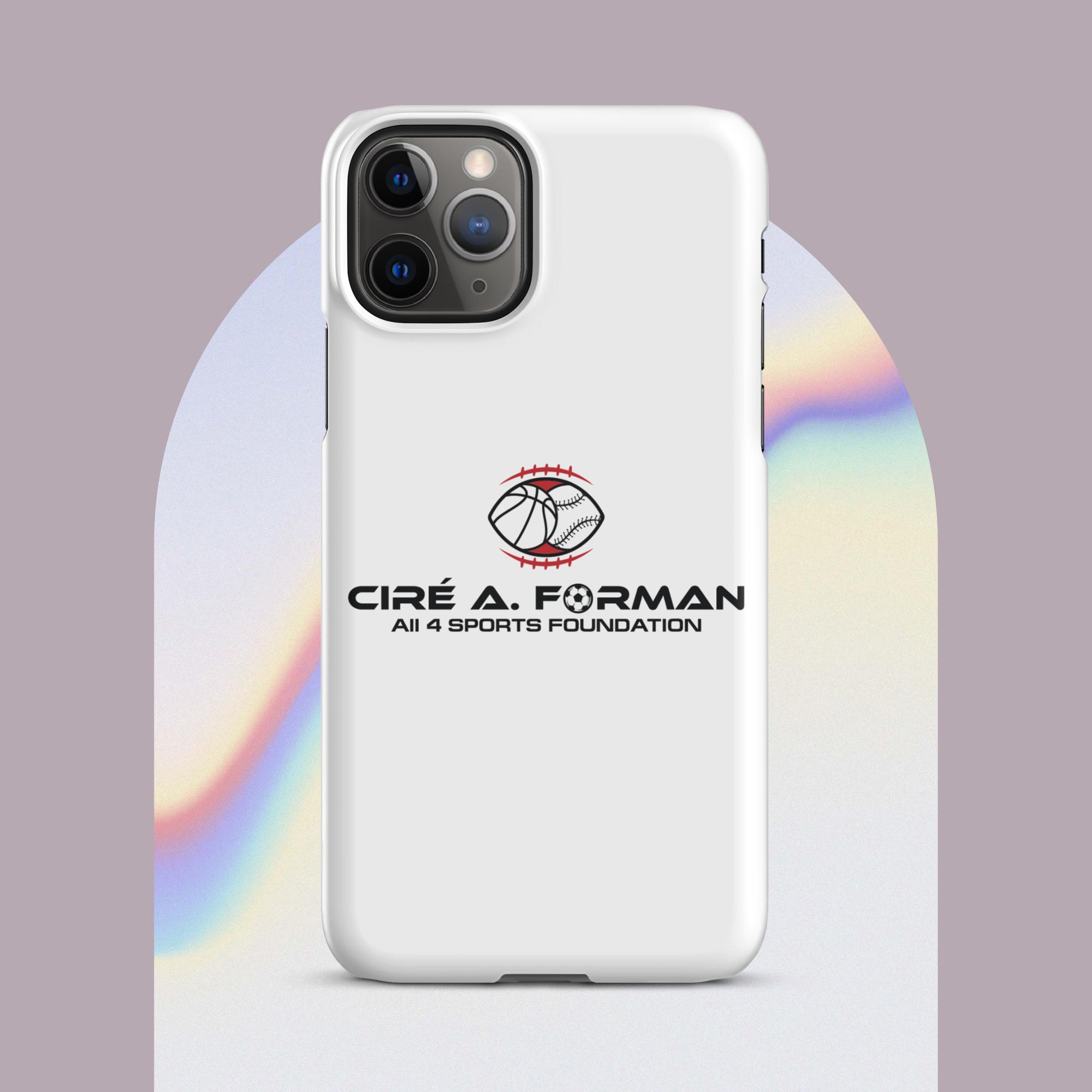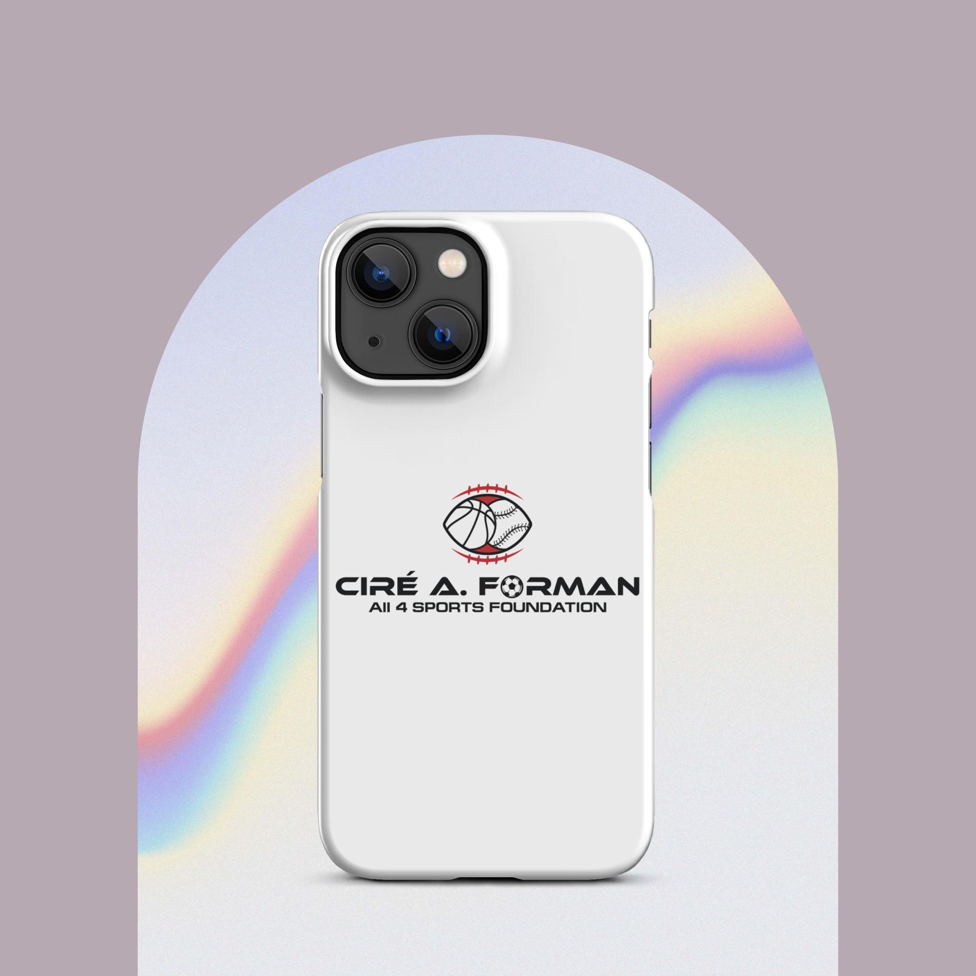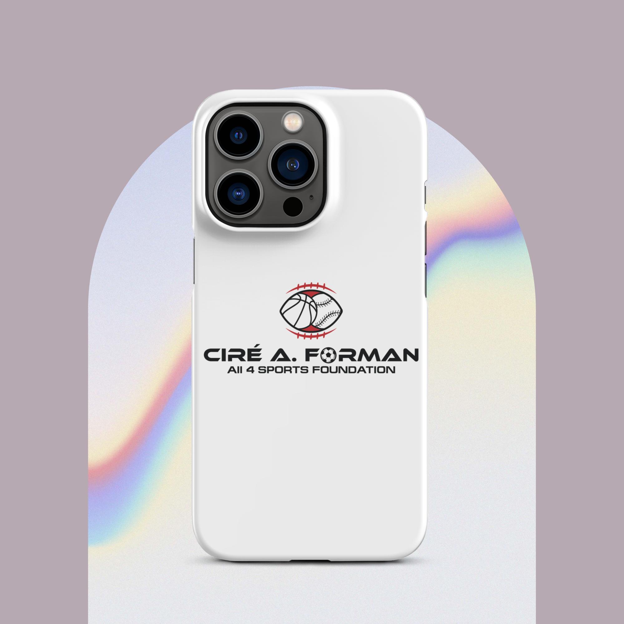 Protect your iPhone with our sleek Snap Case, emblazoned with the Cire A. Forman All 4 Sports Foundation emblem. This case offers both style and protection, showcasing your support for inclusive youth sports programs.